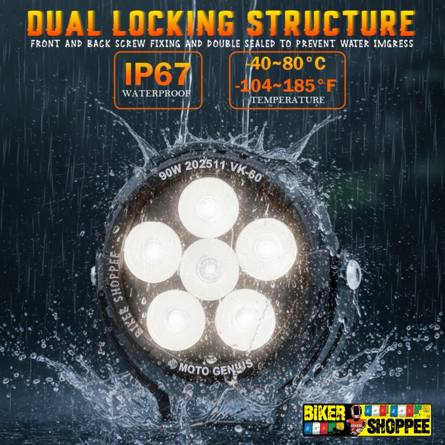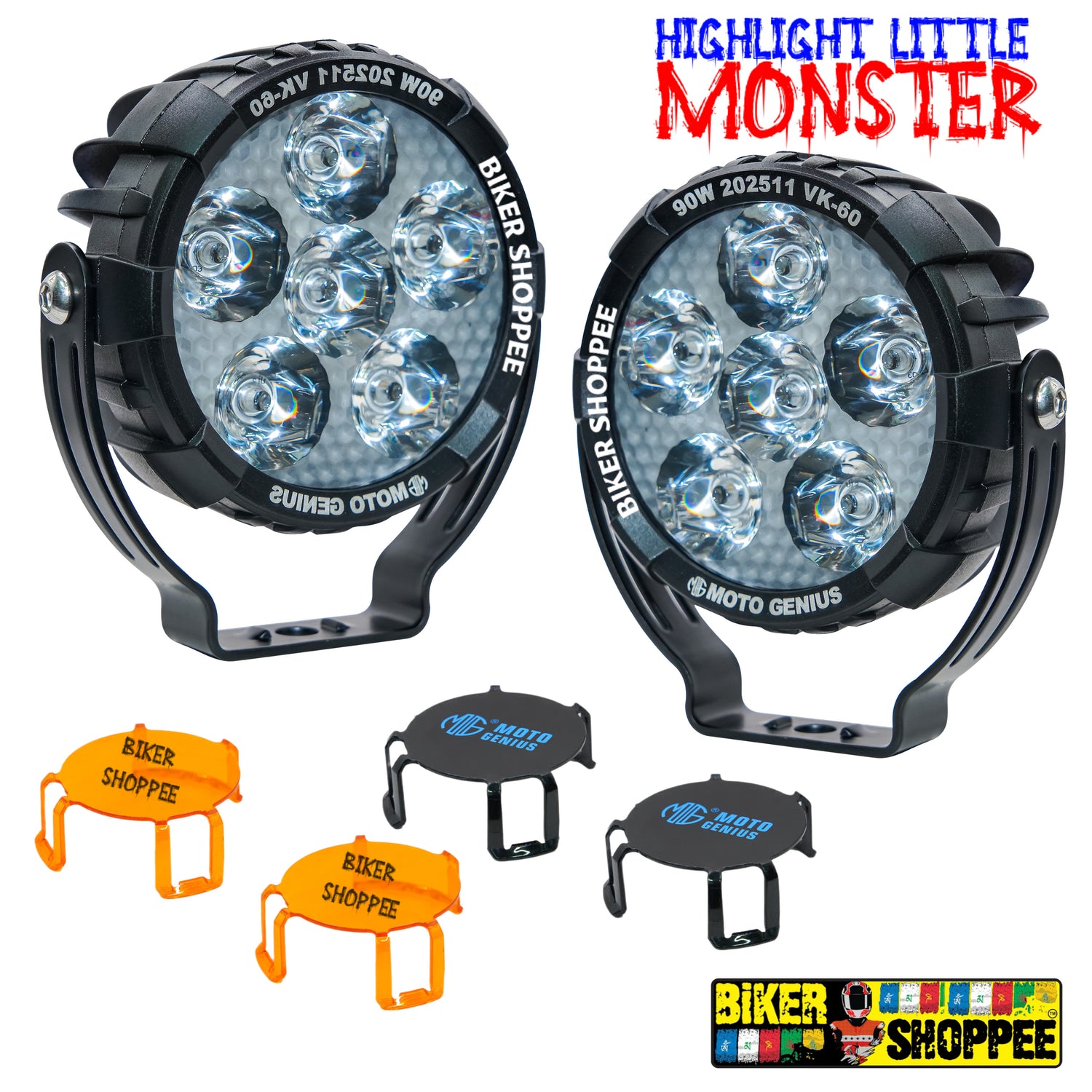 The LITTLE MONSTER TUNDER SERIES VK60 Fog Light Pair Complete Wiring Kit with LED Switch , available at BiKER SHOPPEE, offers exceptional brightness and durability for enhanced visibility in low-light and foggy conditions. With a total power output of 90W, these fog lights deliver intense, wide-angle illumination, making them perfect for night rides and challenging weather. Constructed from robust titanium, they are corrosion-resistant and designed to withstand tough road conditions and vibrations. The lights are easy to install and provide a sleek, modern look that complements any motorcycle. Ideal for both touring and off-road adventures, this fog light pair ensures safety and style on every ride.