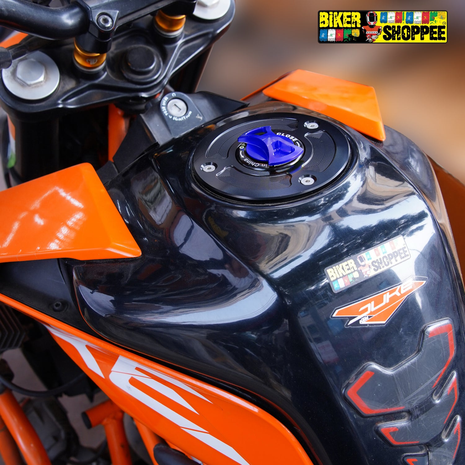 Race-Ready Aesthetics: The Ultimate Keyless Tank Cap for KTM.. Ditch the hassle of keys and upgrade your machine with the Biker Shoppee Signature CNC Keyless Fuel Tank Cap. Designed specifically for the adrenaline junkies riding the KTM Duke and RC series, this accessory is where precision engineering meets racing utility.