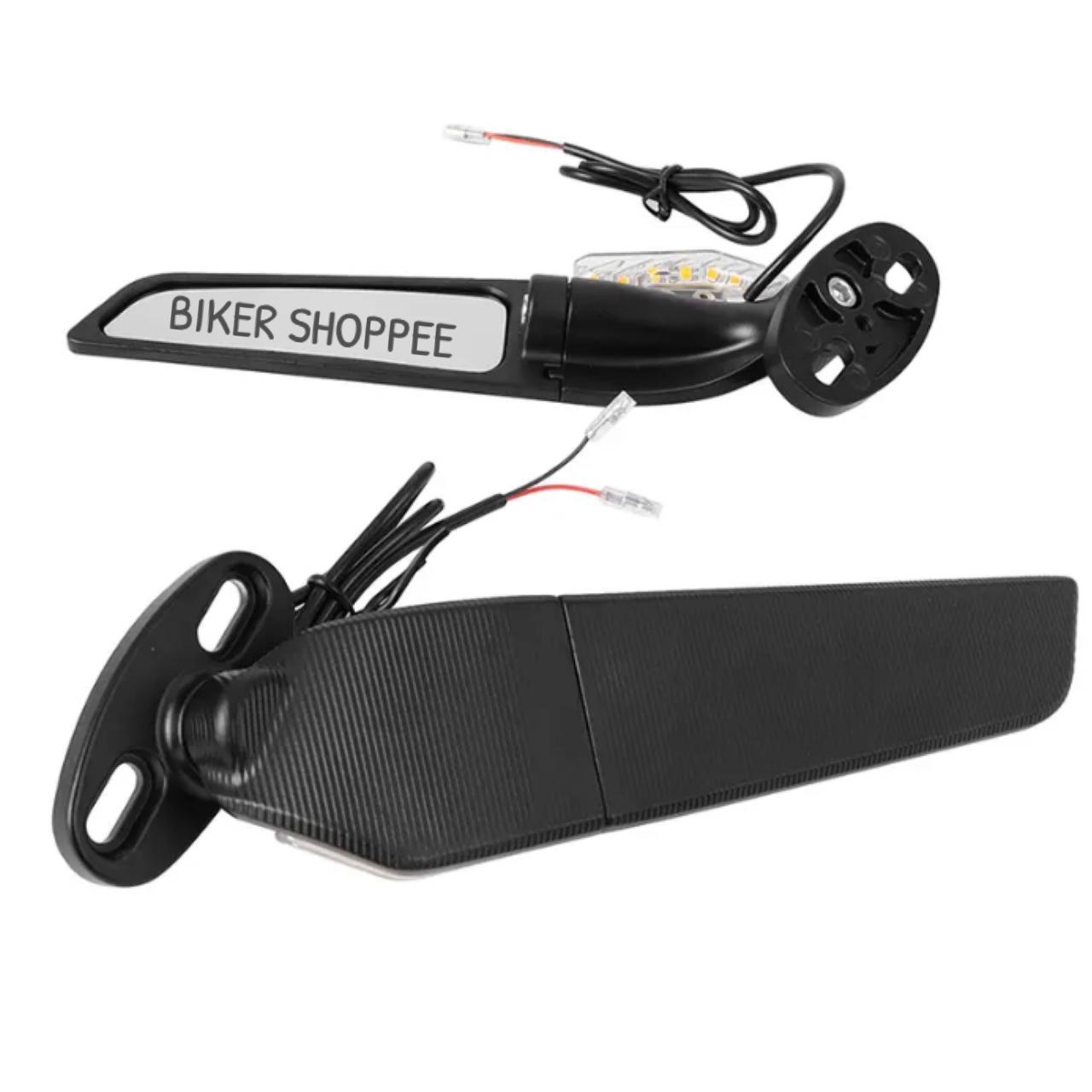 Upgrade your motorcycle with the SUPER STEALTH WING FIN Side Indicator Mirror, a sleek and functional accessory available at BiKER SHOPPEE. Engineered for optimal visibility and style, these mirrors feature integrated turn signals to enhance your bike's safety and aesthetics. Crafted with precision, they offer a seamless fit for various motorcycle models, With their durable construction and efficient signaling, these Indicator Mirrors not only add a modern touch to your ride but also contribute to overall road safety by improving visibility to surrounding vehicles. Whether you're cruising through city streets or embarking on a long journey, these mirrors are a practical and stylish addition to any motorcycle.