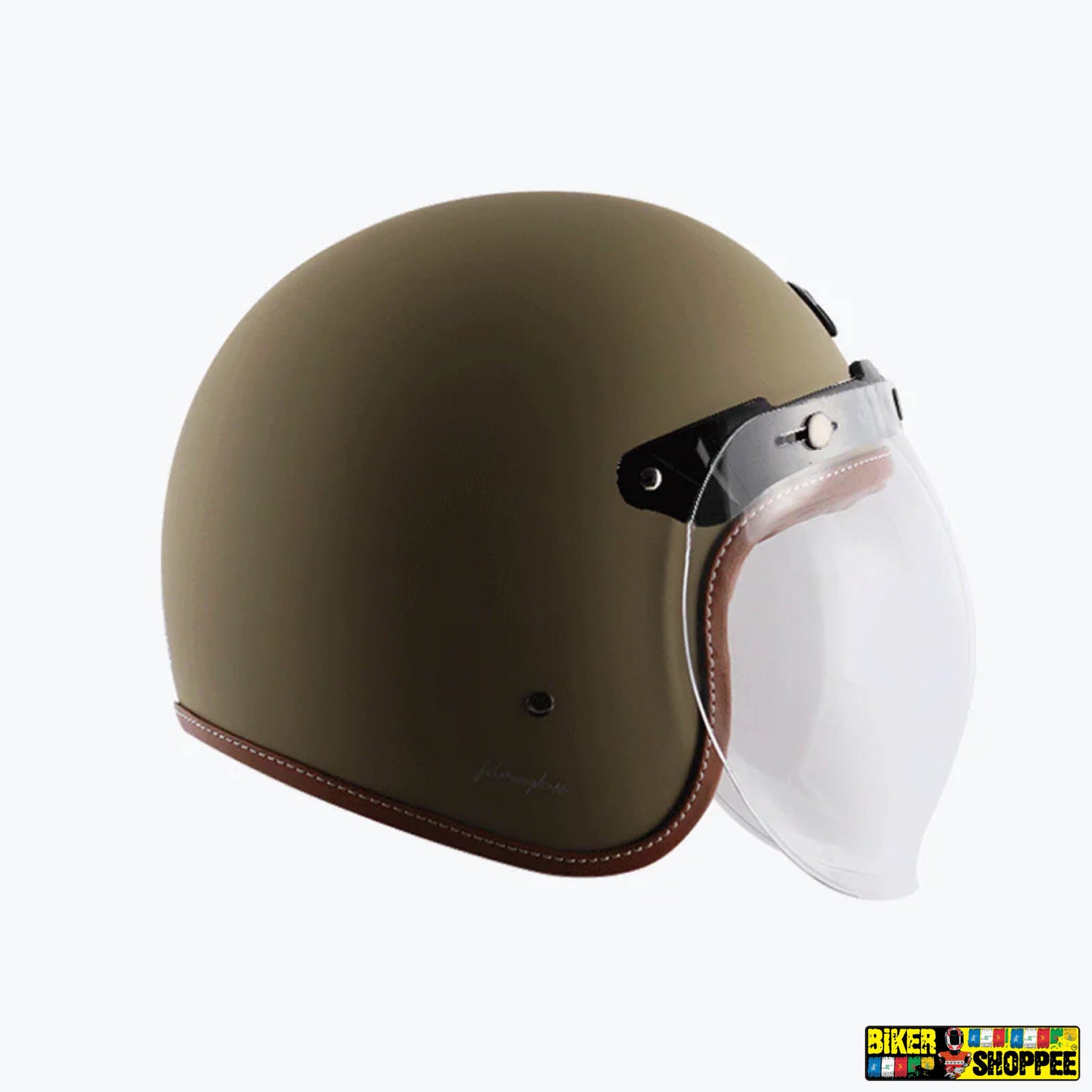Retro Helmets are with a classic-legendary look. Retro's are especially worn on traditional engines such as choppers, bobbers, cafe-racers, and many more. It is a complete entry-level open-face helmet with modern safety and production advancement with industrials standards in performance and style. There are different variations in colors to choose from. Heritage styling with modern luxuries. Traditional stitched Genuine leather edge trim and interior.