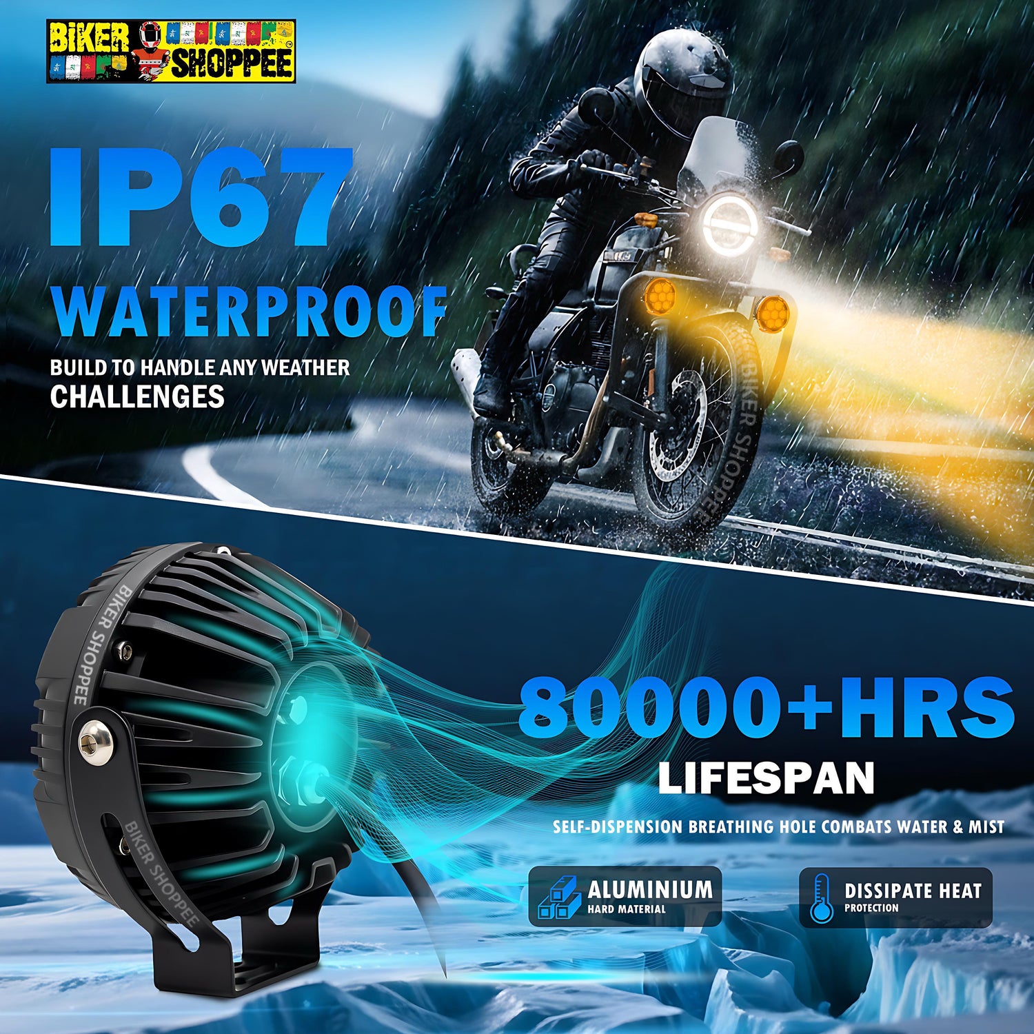 The LITTLE MONSTER TUNDER SERIES Fog Light Pair Complete Wiring Kit with LED Switch , available at BiKER SHOPPEE, offers exceptional brightness and durability for enhanced visibility in low-light and foggy conditions. With a total power output of 120W, these fog lights deliver intense, wide-angle illumination, making them perfect for night rides and challenging weather. Constructed from robust titanium, they are corrosion-resistant and designed to withstand tough road conditions and vibrations. The lights are easy to install and provide a sleek, modern look that complements any motorcycle. Ideal for both touring and off-road adventures, this fog light pair ensures safety and style on every ride.