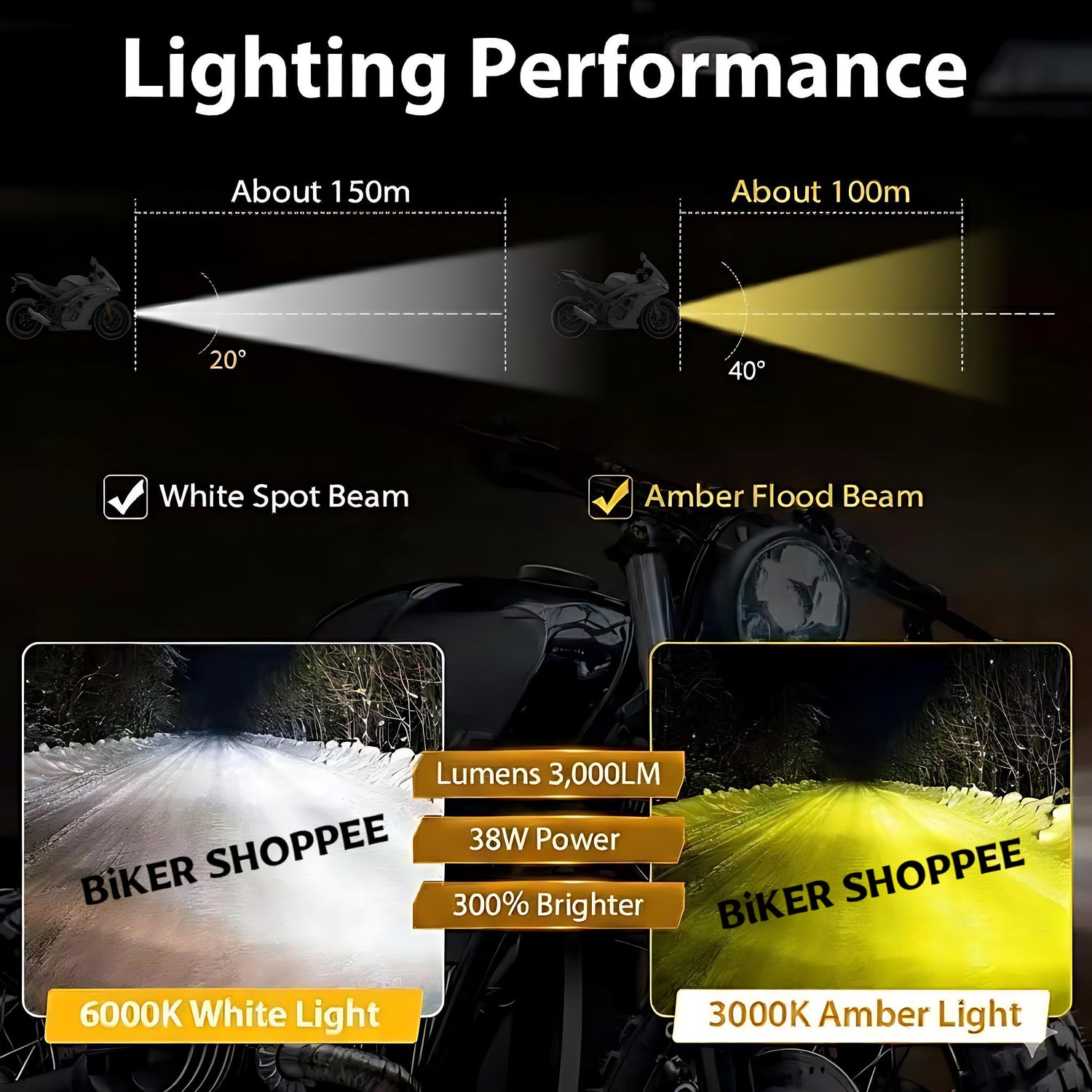 The CYT Led Fog Light Pair DUAL LED, available at BiKER SHOPPEE, offers exceptional brightness and durability for enhanced visibility in low-light and foggy conditions. With a total power output of 40W, these fog lights deliver intense, wide-angle illumination, making them perfect for night rides and challenging weather. Constructed from robust titanium, they are corrosion-resistant and designed to withstand tough road conditions and vibrations. The lights are easy to install and provide a sleek, modern look that complements any motorcycle. Ideal for both touring and off-road adventures, this fog light pair ensures safety and style on every ride.