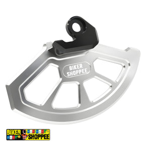 The BiKER SHOPPEE Motorcycle Front Brake Disc CNC Guard Cover Lower Fork Protector Kit is designed to offer robust protection for your motorcycle's front braking system and lower fork components, especially in off-road and harsh riding conditions.It's a high-quality, durable, and lightweight protection kit for the critical front brake and fork area, combining function with an aesthetic factory-style upgrade.