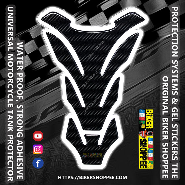 Style Meets Protection: Protect Your Paint, Upgrade Your Style: Premium Carbon Fiber Tank Pad Your motorcycle's fuel tank is its crown jewel, but it's also the easiest place to get ugly scratches. Belt buckles, jacket zippers, and daily wear can ruin that perfect paint job fast. Stop the damage before it starts and upgrade your bike's aesthetics with the Premium Universal Carbon Fiber Tank Pad, exclusively available at Biker Shoppee.