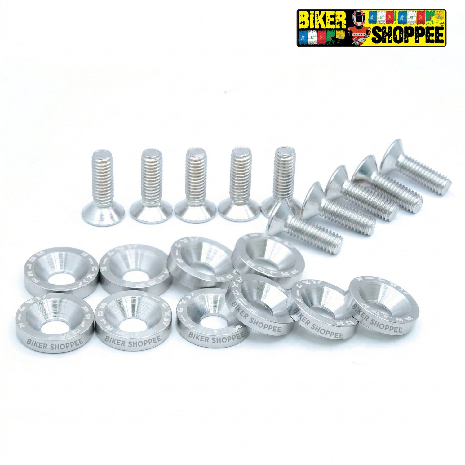 THE BIKER SHOPPEE PROMISE The market is flooded with cheap painted washers that lose their color in a week of sunlight. At www.bikershoppee.com, we guarantee premium anodized quality that lasts, locking your panels tightly without cracking the plastic.