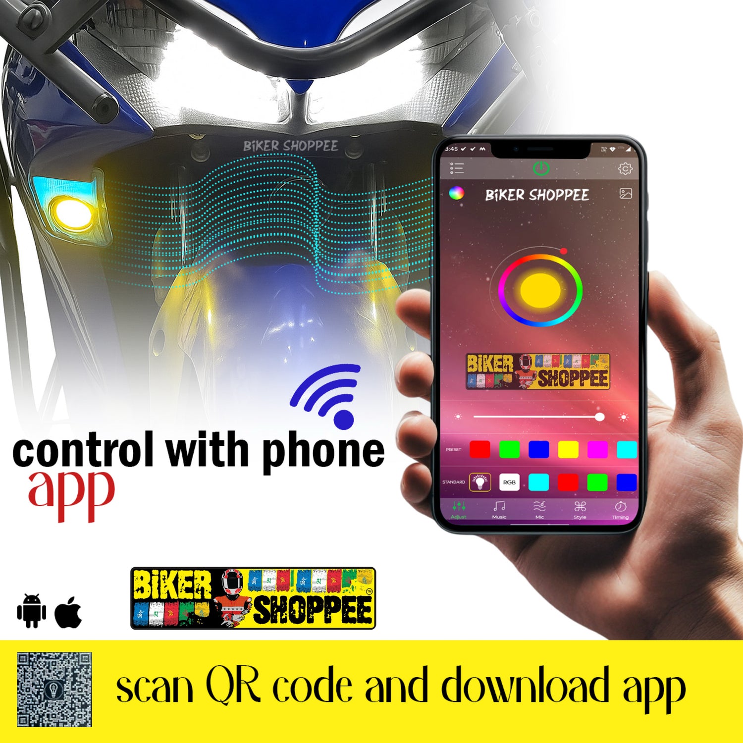 The Yamaha AEROX 155 LED Fog Lamp with Turn Signal features a projector spot light design available at BiKER SHOPPEE, made of high-quality plastic and equipped with energy-efficient LED technology. It supports plug-and-play installation, ensuring ease of retrofit upgrades. Certified for quality assurance, providing buyers peace of mind. The product is backed by a professional manufacturer with over 13 years of experience in motorcycle lighting systems, ensuring reliability and customization options.